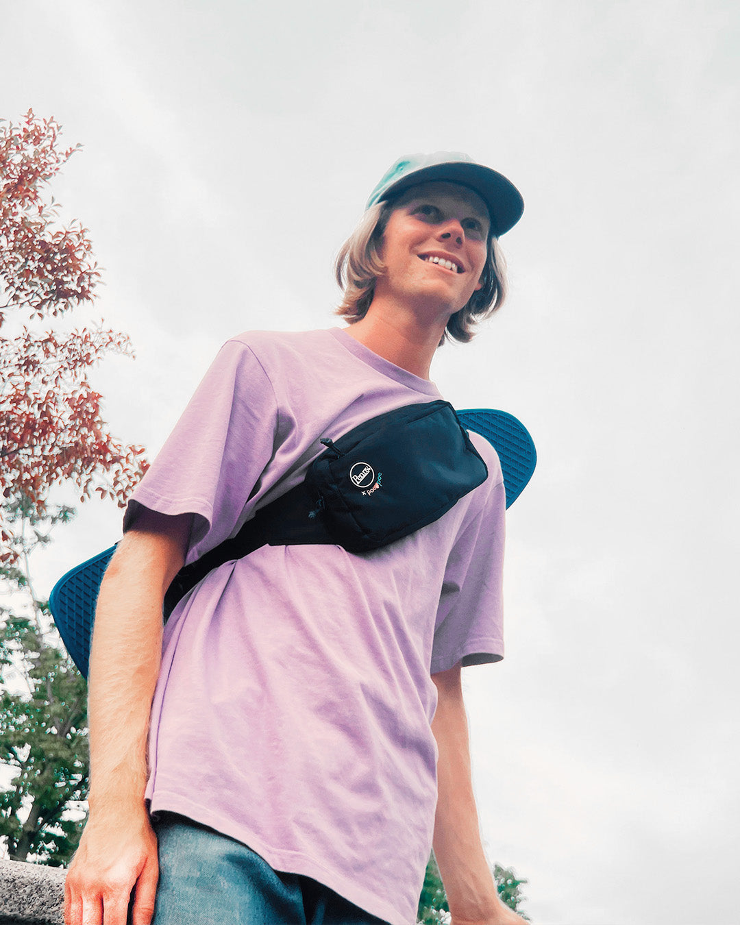 Sick of full pockets and bulky bags, the skate sling was born with the intention of creating something quick, easy and functional- great for any skater on the go.
